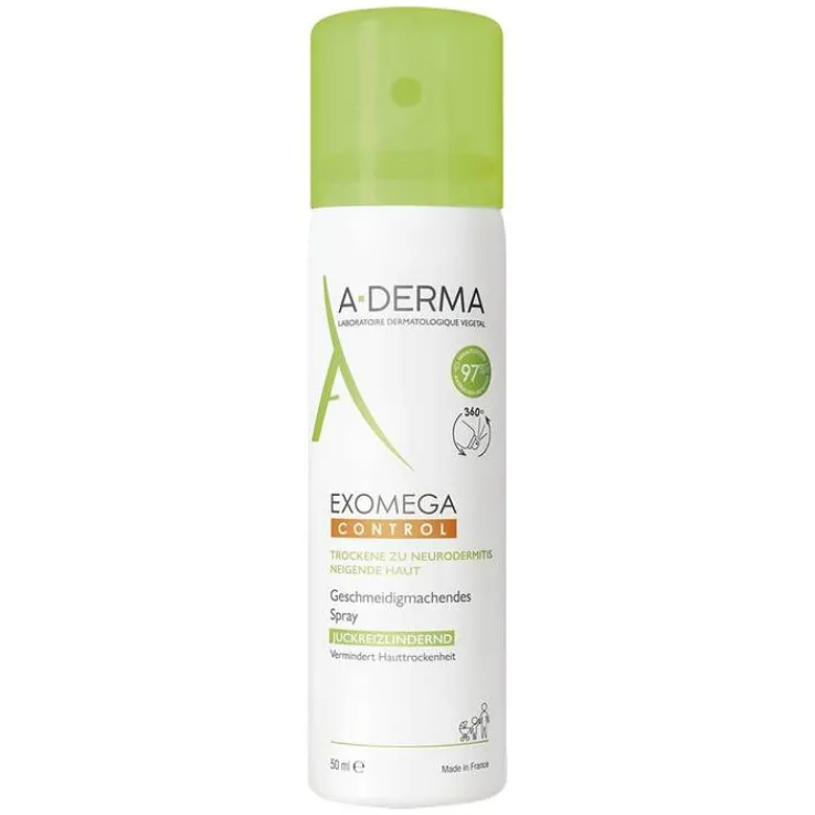 Wirkt der Mikroentzündung entgegen und beruhigt sofort trockene zu Neurodermitis neigende Haut und mildert durch Hauttrockenheit verursachte Irritationen. Exomega Control geschmeidigmachendes Spray reduziert die Häufigkeit eines Schubes der atopischen Dermatitis.