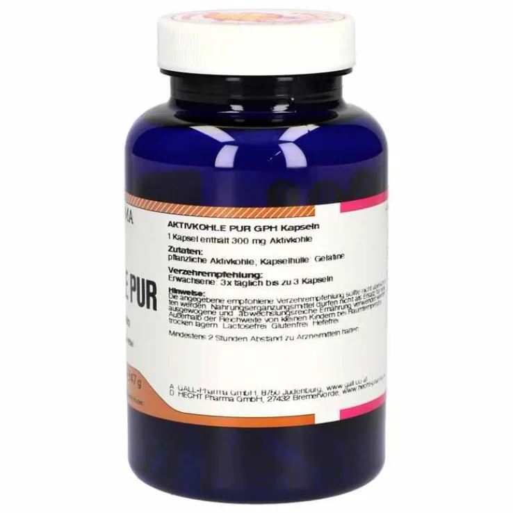 - 3 Kapseln enthalten 300 mg Aktivkohle