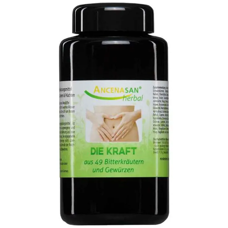 Kurkuma, Schwarzdron, Schwarzkümmel, Berberitzen, Artischocke, Nelken, Olivenblätter, Schafgarbe, Kapuzinerkresse, Enzian, Tausendgüldenkraut, Löwenzahnblätter, Macis, Piment, Kümmel, Eibisch, Ingwer, Brunnenkresse, Schachtelhalm, Angelikawurzel, Wacholderbeeren, Ulmenrinde, Sonnenhutkraut, Koriander, Orangenschalen, Anis, Beifuß, Cayenne, Bertram, Thymian, Papaya, Gundelrebe, Ehrenpreis, Bärlauch, Eisenkraut, Grüntee, Lavendel, Zimt, Bibernell, Pertersilienwurzel, Süßholz, Odermenning, Isländischmoos, Ringelblume, Brennnessel, Vogelmiere, Ysop, Hagebutte und rote Malve.