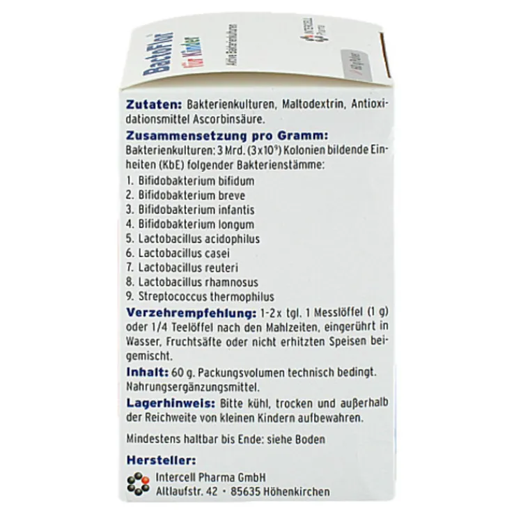 Bactoflor® für Kinder bietet eine umfassende Versorgung mit aktiven Bakterienkulturen, da es eine Kombination von neun sich ergänzenden dünn- und dickdarmspezifischen Leitkulturen der Darmflora in konzentrierter Form enthält.