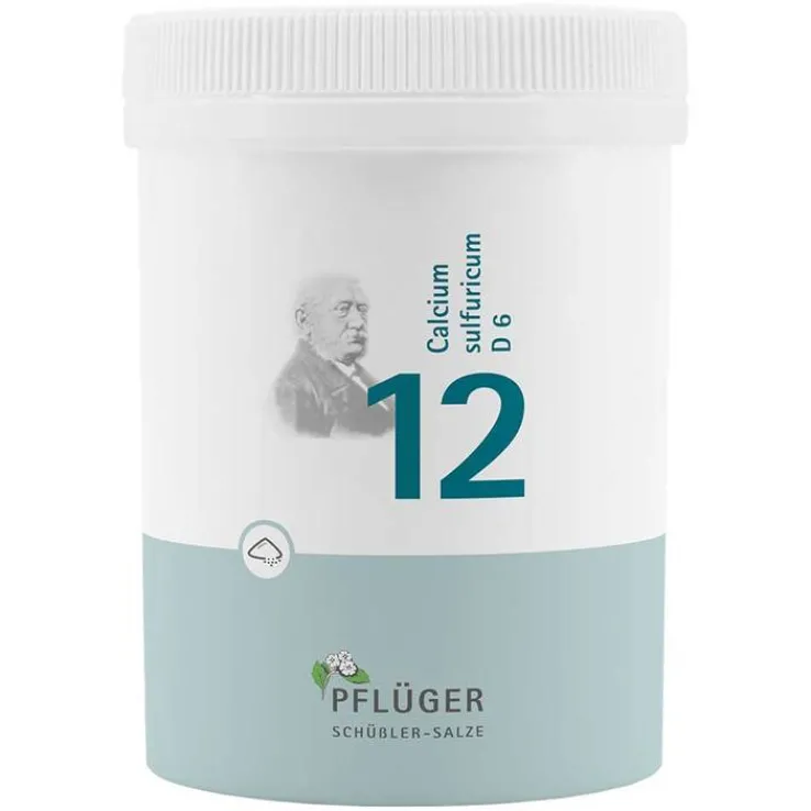 Biochemie Pflüger® Nr. 12 Calcium sulfuricum D6Zusammensetzung: 100 g/250 g Verreibung enthalten: Wirkstoff: Calcium sulfuricum Trit. D6 100 g/250 g. Registriertes homöopathisches Arzneimittel, daher ohne Angabe einer therapeutischen Indikation. Gegenanzeigen / Nebenwirkungen: eine bekannt. Arzneimittel enthält Lactose. Zu Risiken und Nebenwirkungen lesen Sie die Packungsbeilage und fragen Sie Ihre Ärztin, Ihren Arzt oder in Ihrer Apotheke. Homöopathisches Laboratorium Alexander Pflüger GmbH & Co. KG · 33378 Rheda-Wiedenbrück · [email protected] · www.pflueger.de