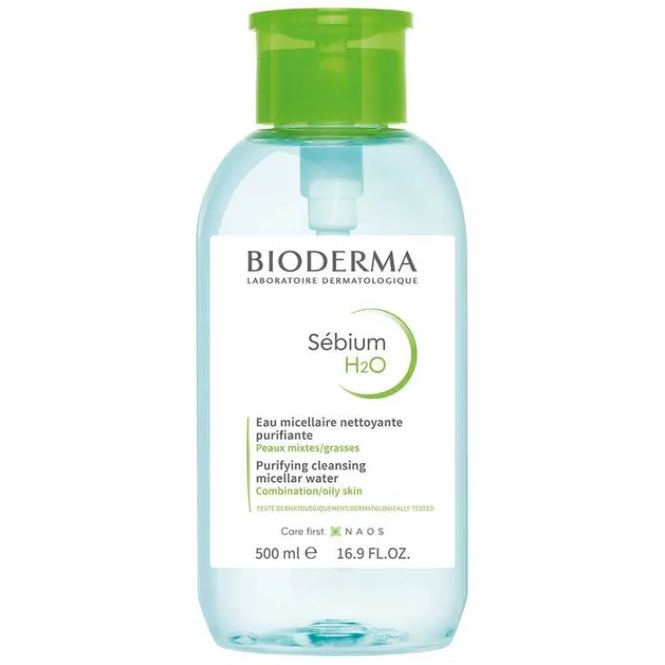 Sebium H2O ist das Mizellenreinigungswasser speziell für Mischhaut bis ölige Haut. Es reinigt sanft und entfernt Make-up, ohne die Haut auszutrocknen. Es beseitigt überschüssigen Talg und reinigt die Epidermis. Die Bioderma Sebium H2O Reinigungslösung muss nicht abgespült werden und ist nicht komedogen.