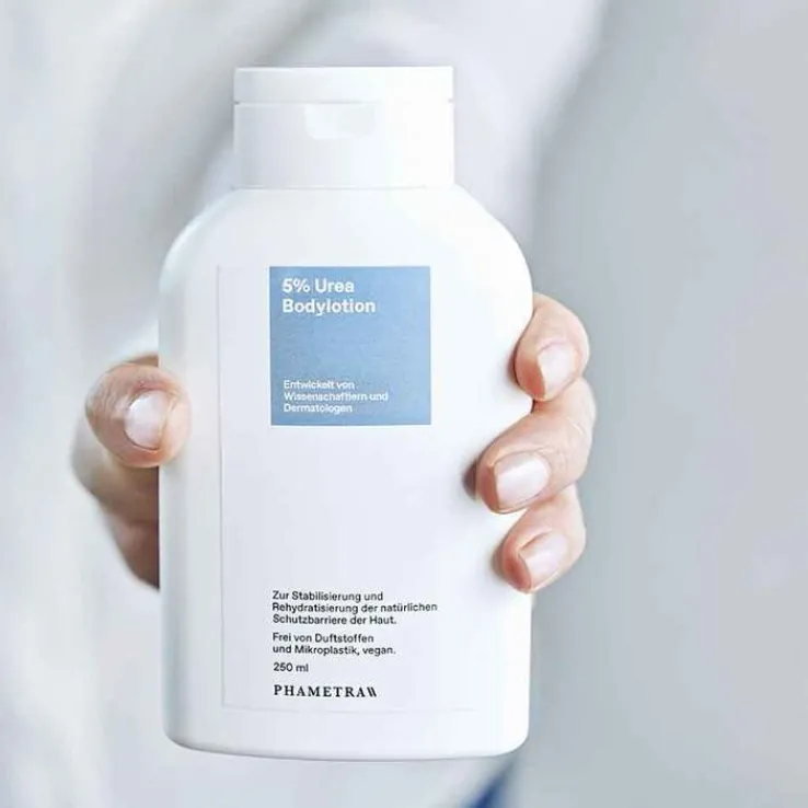 Die schnell einziehende 5% Urea Phametra Bodylotion pflegt und regeneriert strapazierte Haut am gesamten Körper. Sie reduziert Spannungen, bindet Feuchtigkeit und erhöht die Hautelastizität.