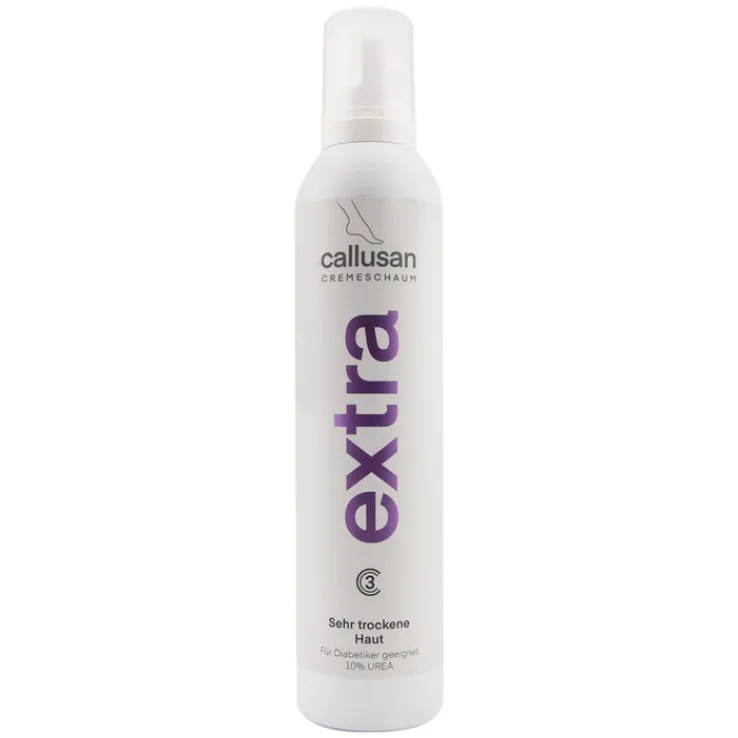 Callusan Extra Schaum ist mit 10% Urea. Der Schaum reguliert den Feuchtigkeitsausgleich auch in tieferen Hautschichten. Die enthaltene Stearinsäure schützt zusätzlich vor Umwelteinflüssen und sorgt für eine ausgewogene Rückfettung. In ihren natürlichen Reserven wird die Haut nachhaltig versorgt und ergänzt. Callusan Extra Schaum ist frei von Duft- und Farbstoffen und für Diabetiker besonders geeignet.
