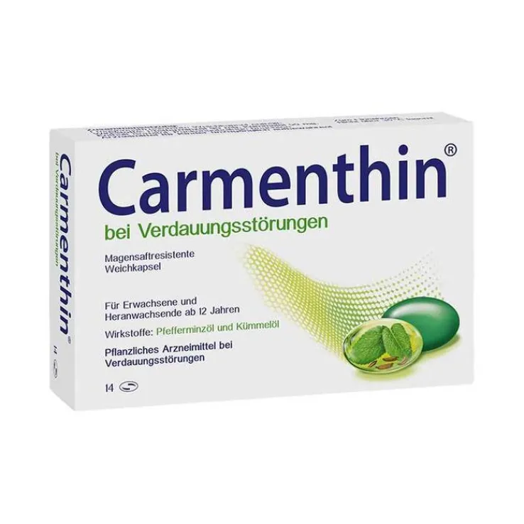 Das pflanzliche und gut verträgliche Arzneimittel Carmenthin® enthält eine hochdosierte Wirkstoffkombination aus Pfefferminzöl und Kümmelöl in einer magensaftresistenten Kapsel. Carmenthin® ist besonders empfehlenswert, wenn es um die Behandlung von Verdauungsstörungen wie Blähungen, Völlegefühl und Bauchschmerzen geht.