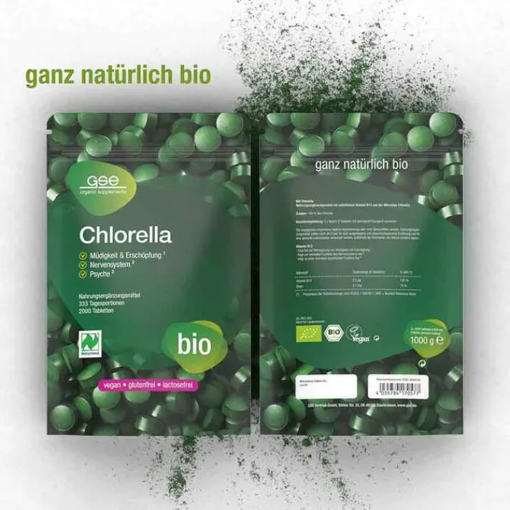 - Nahrungsergänzungmittel mit natürlichem Vitamin B12 aus der Meeresalge Chlorella