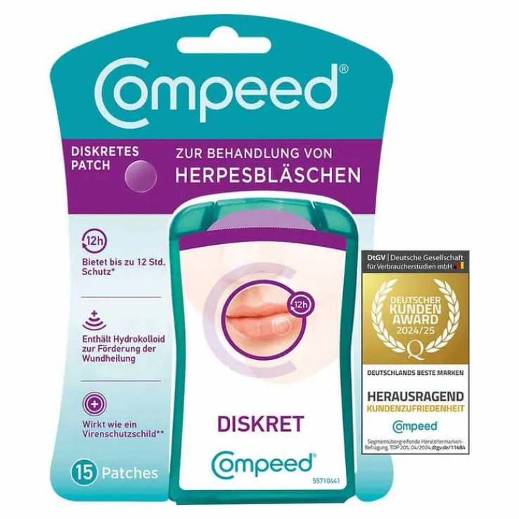 Das Compeed Herpesbläschen-Patch ist grundsätzlich in jeder Phase eines Ausbruchs verwendbar. Allerdings empfiehlt der Hersteller, insbesondere in der Wundheilungsphase eines Ausbruchs das Compeed Herpesbläschen-Patch zu verwenden, da es in dieser Phase die Wundheilung beschleunigt.