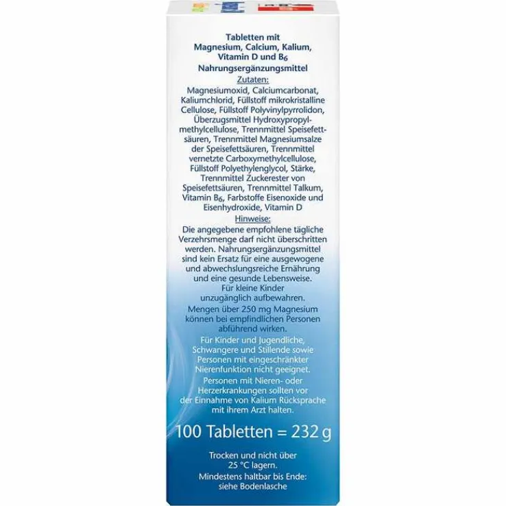 - Nahrungsergänzungsmittel mit Magnesium, Calcium, Kalium, Vitami D und B6