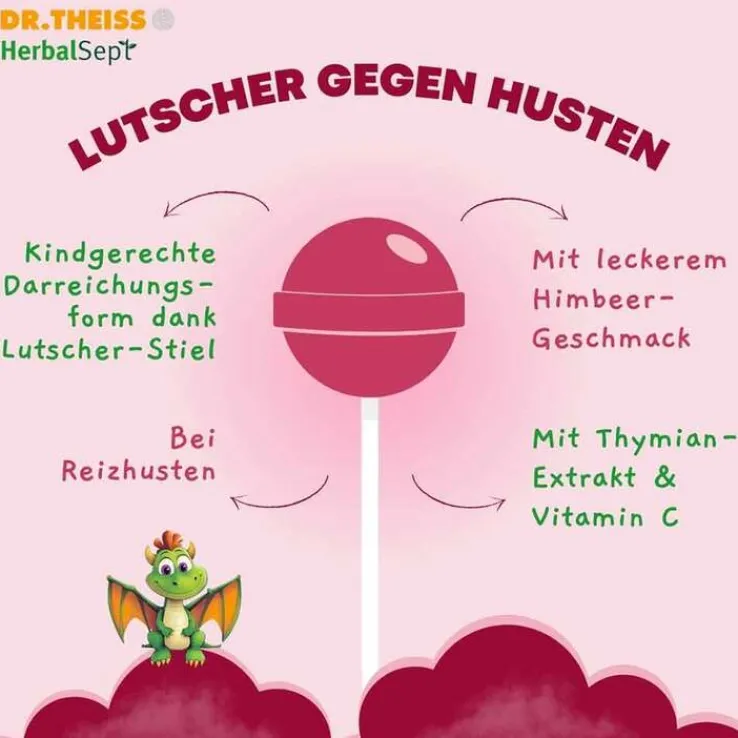 Dr. Theiss Herbal Sept Husten Lutscher sind ein kindgerechtes Medizinprodukt, das hilft, den Hustenreiz und die Beschwerden Ihres Kindes zu lindern. Damit sich die Kleinen schnell besser fühlen – und auch alle anderen wieder aufatmen können.