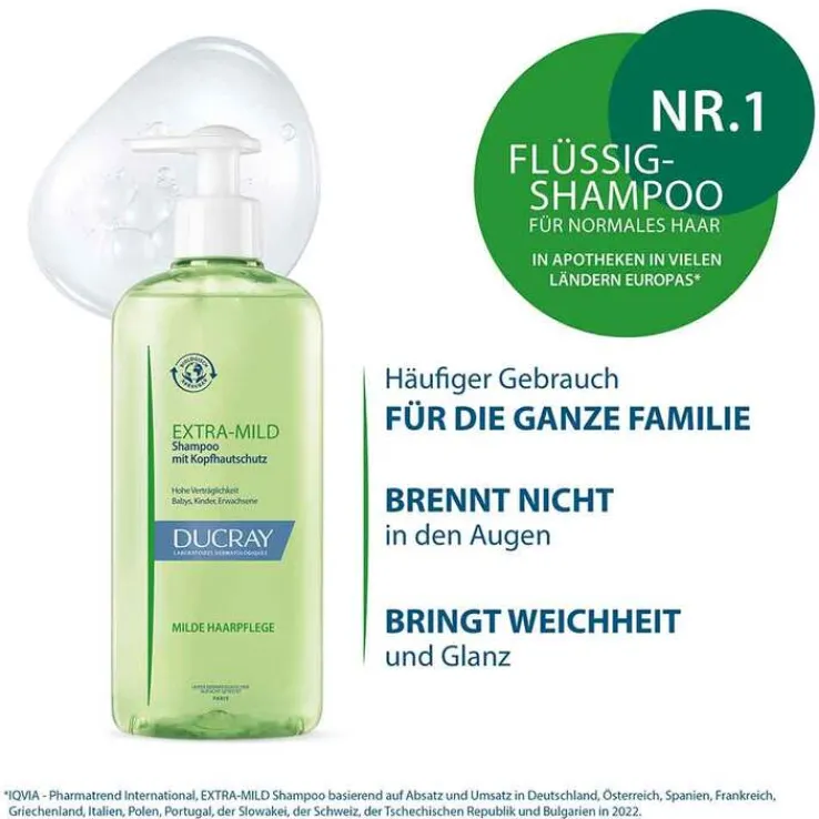 Das Ducray Extra Mild Shampoo reinigt Haare und Kopfhaut besonders sanft. Es ist aufgrund seiner hochverträglichen Formulierung mit dezentem, hypoallergenem Duft für die tägliche Haarwäsche der ganzen Familie geeignet (Babys ab 2 Monate).