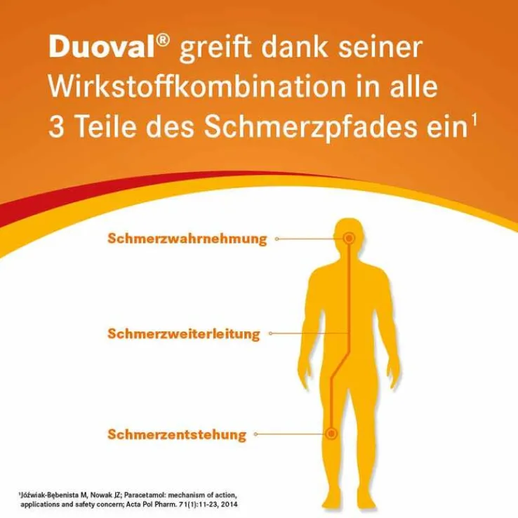 Duoval® kann gezielt bei Schmerzen, die durch alleinige Anwendung von Ibuprofen oder Paracetamol nicht gelindert werden können, eingesetzt werden.