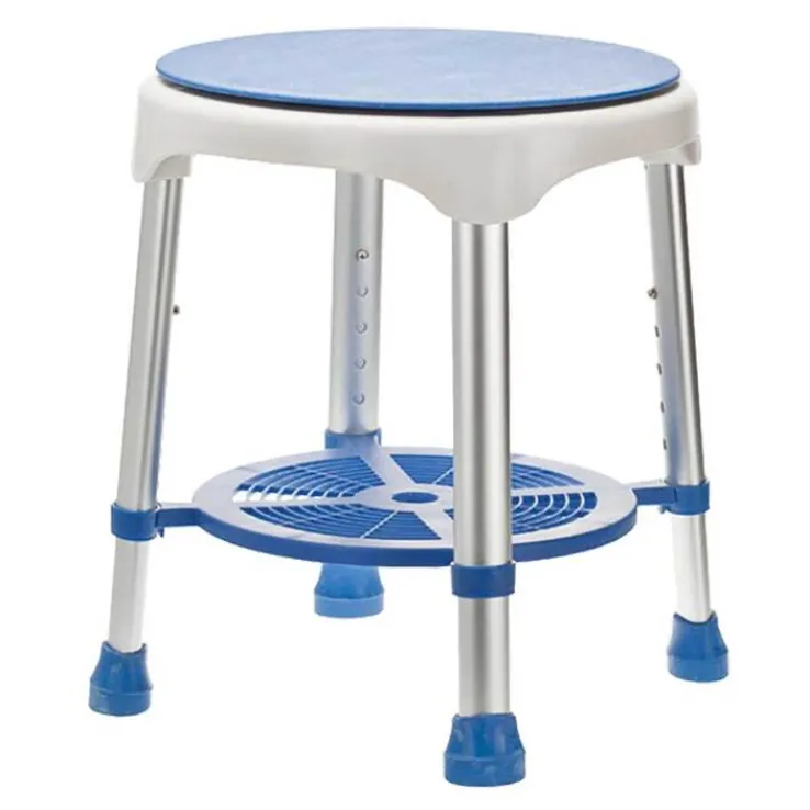 Ideal für die Nutzung im Badezimmer, wenn nicht viel Platz zur Verfügung steht. Die höhenverstellbare, drehbare, gepolsterte Sitzfläche garantiert ein angenehmes Sitzgefühl und erleichtert das Erreichen von Gegenständen oder anderen Hilfsmitteln. Eine Ablage unterhalb der Sitzfläche bietet Platz für Pflegemittel. Einfach zu reinigen und unempfindlich gegen Korrosion.
