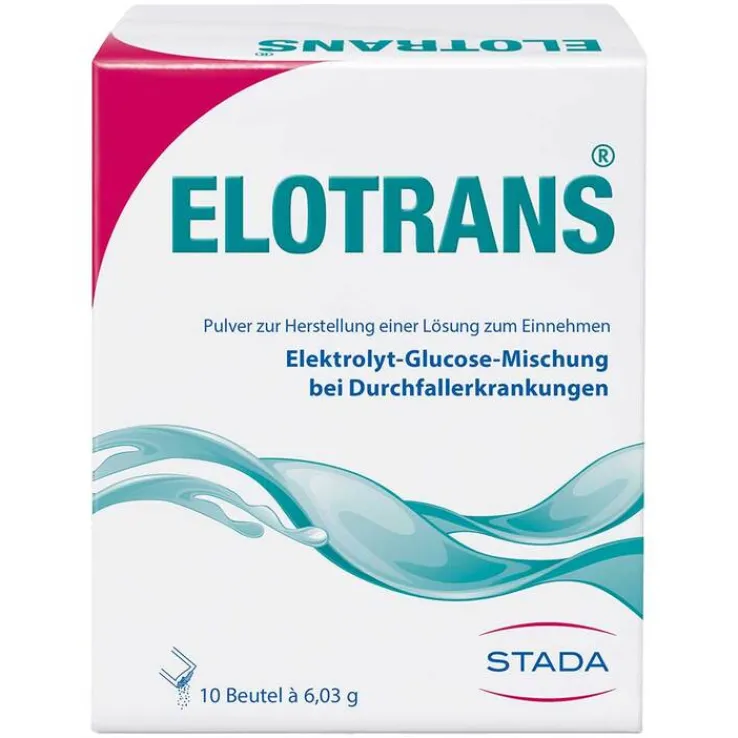 Bei Durchfällen ist eine ausreichende Flüssigkeits- und Elektrolytsubstitution die wichtigste therapeutische Maßnahme, um rasch das Allgemeinbefinden zu verbessern. In der oralen Rehydratationslösung Elotrans® ist das Verhältnis von Glukose zu Natrium so optimiert, dass eine maximale Natriumresorption und damit Wasseraufnahme erreicht wird. Elotrans liefert dem Körper Salze, Mineralstoffe und Glucose in der optimalen Zusammensetzung und unterstützt so die Regeneration.