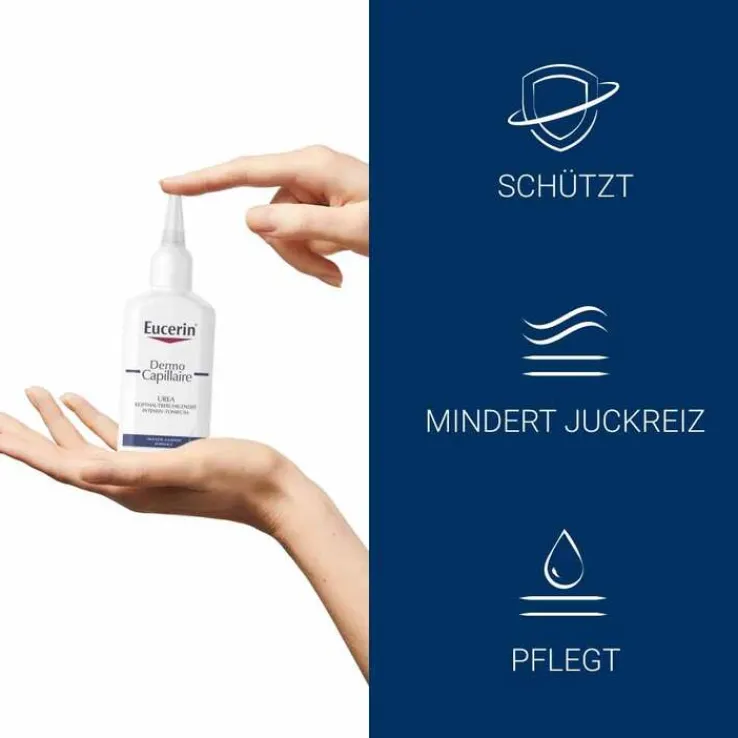 Das Eucerin DermoCapillaire Urea Kopfhautberuhigende Intensiv-Tonikum beruhigt irritierte Kopfhaut und mildert den Juckreiz. Es spendet der Kopfhaut intensive Feuchtigkeit und eignet sich mit seiner milden Formel auch zur Pflege von empfindlicher Kopfhaut sowie bei Neurodermitis und Psoriasis.