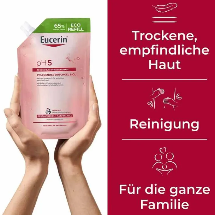 Eucerin pH5 Duschgel – Seifenfreie Reinigung für trockene und strapazierte Haut – Nachfüllpackung