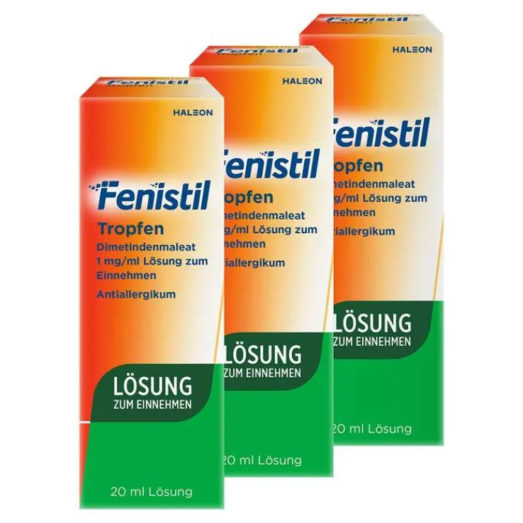 Fenistil Tropfen Wirkstoff: Dimetindenmaleat Anwendungsgebiete: Zur symptomatischen Linderung von histaminbedingtem Juckreiz; windpockenassoziiertem Juckreiz bei Kleinkindern; allergischem Schnupfen bei Patienten über 6 Jahren; Nesselsucht (Urtikaria); Insektenstichen. Apothekenpflichtig. Stand: 05/2018. Zu Risiken und Nebenwirkungen lesen Sie die Packungsbeilage und fragen Sie Ihre Ärztin, Ihren Arzt oder in Ihrer Apotheke.