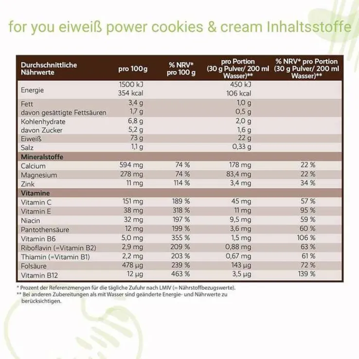 Schreibe die erste Bewertung für „For You eiweiß power Cookies & Cream Pulver, 750 g“ Antworten abbrechen
