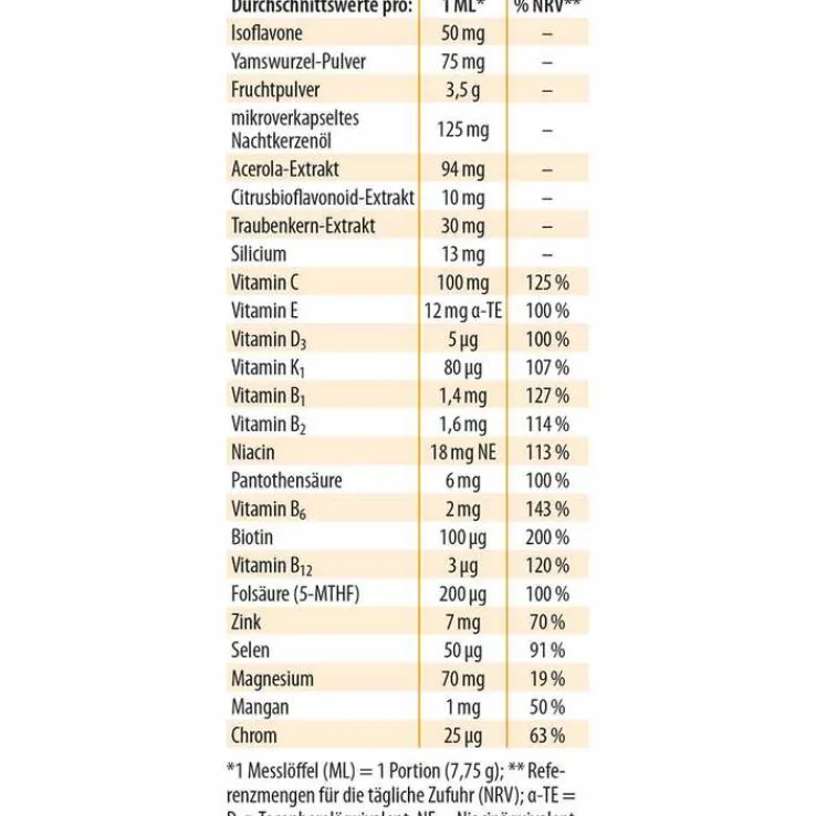 - Mit Soja-Isoflavonen, Nachtkerzenöl und Yamswurzelpulver