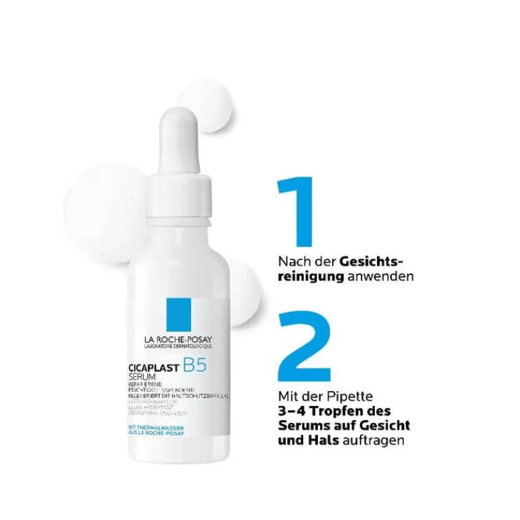 La Roche Posay Cicaplast B5 Serum eignet sich für die tägliche Anwendung. Morgens und/oder abends 1-2 Tropfen des Gesichtsserums auf die gereinigte Haut von Gesicht und Hals auftragen und mit den Fingerspitzen sanft einmassieren. Nach circa einer Minute die gewohnte Pflegeroutine fortsetzen.