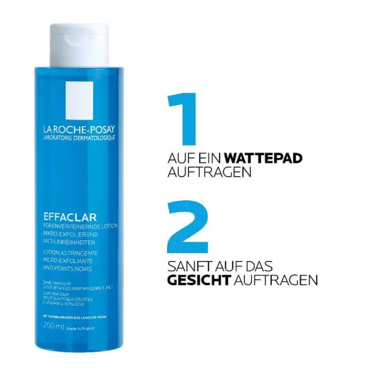 Die porenverfeinernde Lotion ist die ideale Ergänzung zur Effaclar Pflegeserie von La Roche-Posay. Sie entfernt sanft Rückstände des Reinigungsgels und bereitet die Haut auf das anschließende Pflegeprodukt vor. Die Lotion ist nicht komedogen.