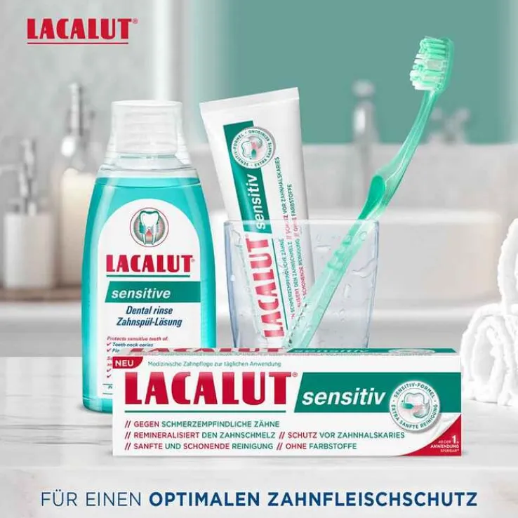 Das Ergebnis: LACALUT sensitiv reduziert die Reiz- und Schmerzempfindlichkeit der Zähne. Hydroxylapatit verschließt die Dentinkanälchen, Bisabolol pflegt und beruhigt das Zahnfleisch. Die extra sanfte Formel remineralisiert und stärkt den Zahnschmelz, um einen effektiven Schutz vor äußeren Einflüssen zu bieten. Die adstringierende Wirkung stärkt und schützt das Zahnfleisch spürbar ab der ersten Anwendung*, wodurch der empfindliche Zahnhals wieder sanft umhüllt wird. Fluoride in der Formel schützen umfassend vor Zahnhalskaries.