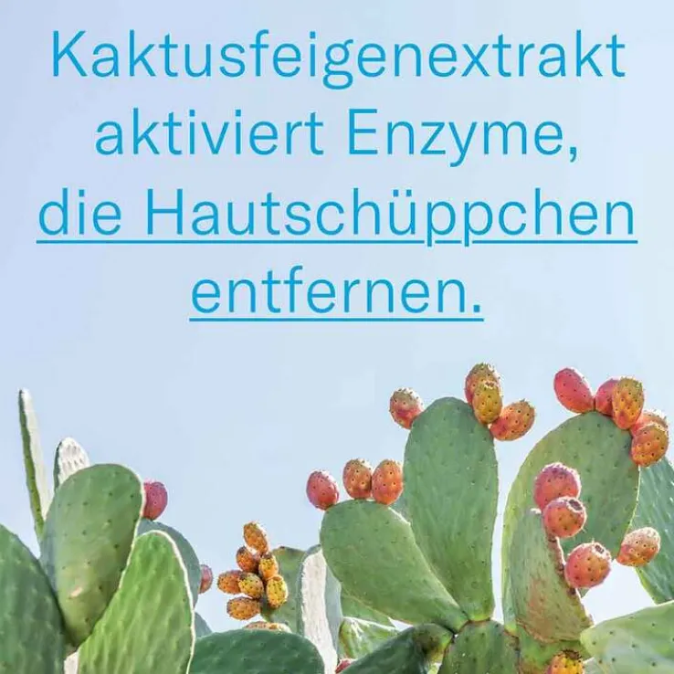 - Kaktusfeigenextrakt erhöht die Aktivität von Enzymen, die sichtbare Hautschüppchen entfernen.