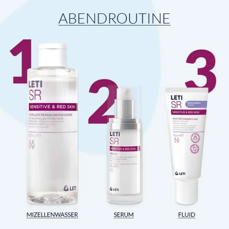 Das Ergebnis ist ein überzeugender sofortiger Frischeeffekt, eine Reduktion der Rötungen und ein strafferes Hautbild. LETI SR Anti-Rötungen Serum spendet intensive Feuchtigkeit und trägt dazu bei, Allergierisiken zu minimieren. Entwickelt für Erwachsene. Klinische Studien belegen die Wirkung des LETI SR Anti-Rötungen Serums: Hautrötungen und Reizungen wurden verringert, die Hautbarriere gestärkt und der Wiederaufbau der Hautstruktur nach Gesichtslaserbehandlungen beschleunigt.¹ ²