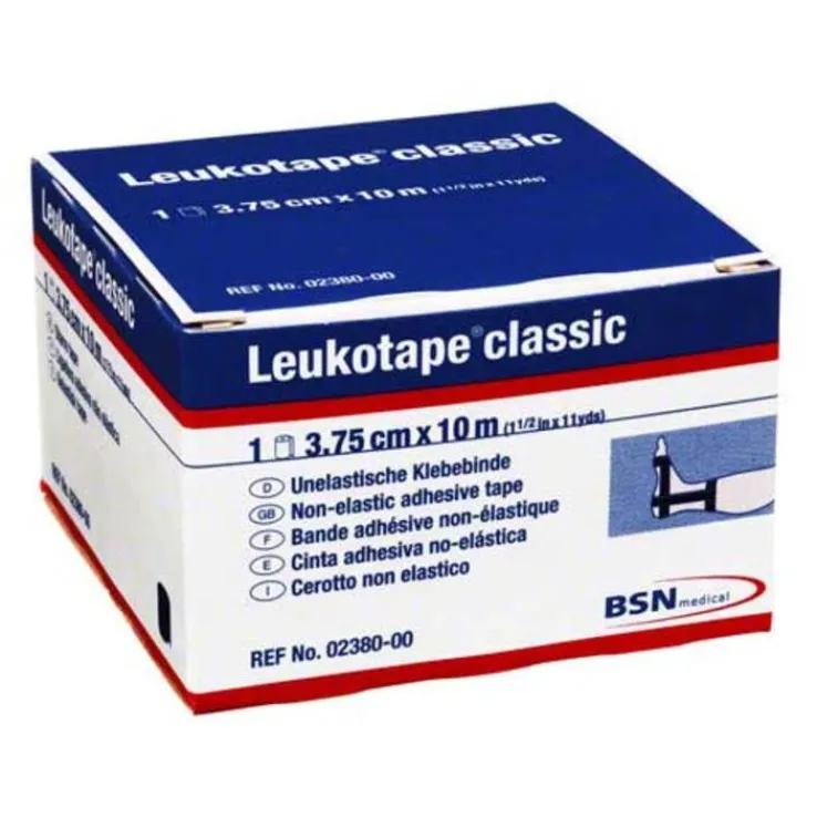 Leukotape® classic ist eine uneleastische Klebebinde für funktionelle Verbände mit hoher Klebkraft.
