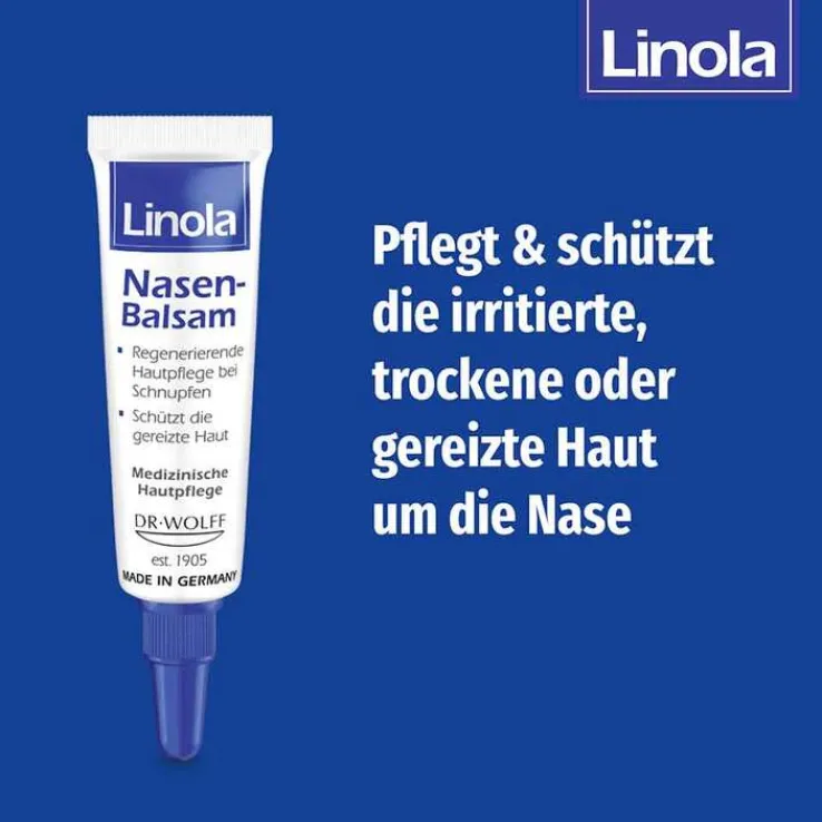 Gerade in der kalten Jahreszeit wird die Haut um die Nase stark beansprucht. Trockene Heizungsluft, Erkältungskrankheiten mit Schnupfen und häufiges Naseputzen reizen die Haut. Schmerzhafte Rötungen sind dann oft die Folge. Daher wurde Linola Nasen-Balsam eigens für die medizinische Pflege irritierter oder trockener Haut um die Nase entwickelt.