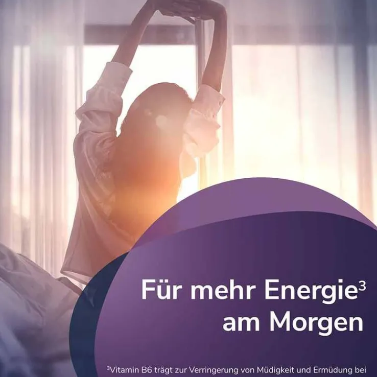 * Melatonin trägt zur Verkürzung der Einschlafzeit bei. Die positive Wirkung stellt sich ein, wenn kurz vor dem Schlafengehen 1 mg Melatonin aufgenommen wird. Vitamin B6 trägt zu einer normalen Funktion des Nervensystems bei. Vitamin B6 trägt zur normalen psychischen Funktion bei. Vitamin B6 trägt zur Verringerung von Müdigkeit und Ermüdung bei.
