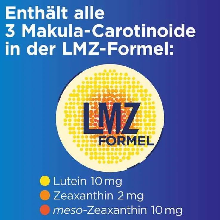 - Nahrungsergänzungsmittel mit Lutein (10 mg), meso-Zeaxanthin (10 mg) und Zeaxanthin (2 mg) plus Riboflavin