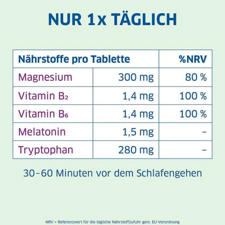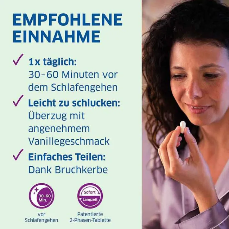 1 x täglich 1 Tablette ca. 30-60 min vor dem Schlafengehen einnehmen.