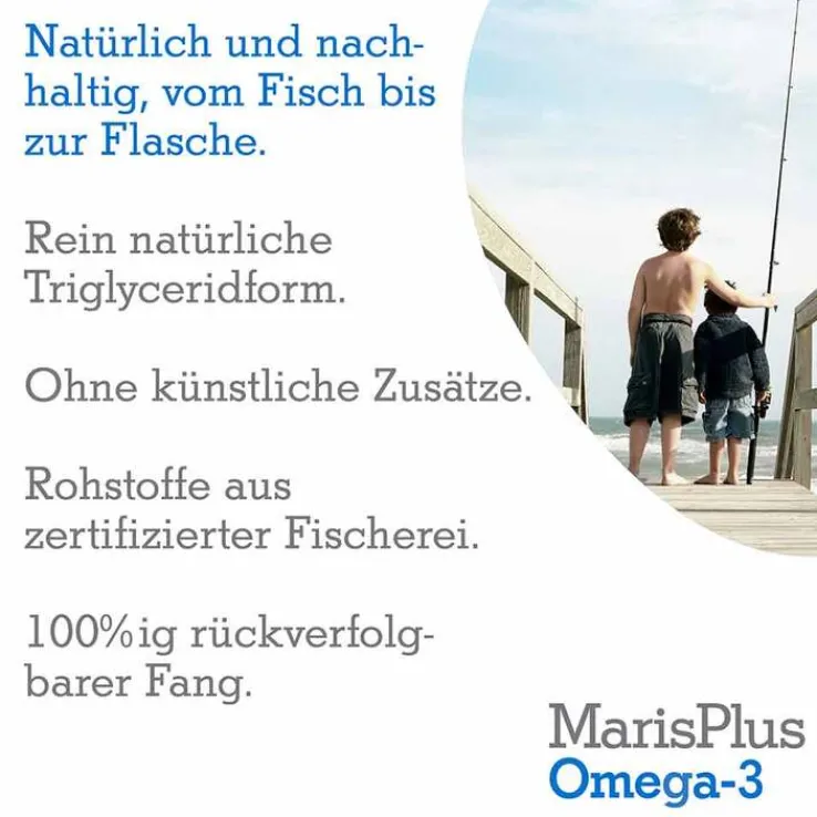 Ein Teelöffel (5 ml) MarisPlus sind 4.600 mg Fettsäuren in der natürlichen Triglyceridform – mit 1.130 mg Omega-3 inklusive 510 mg DHA, 370 mg EPA und 50 mg DPA. Neben EPA und DHA sind andere Omega-3-Fettsäuren enthalten. Aufgrund der natürlichen Rohstoffbasis können Abweichungen zu den angegebenen Durchschnittswerten auftreten.