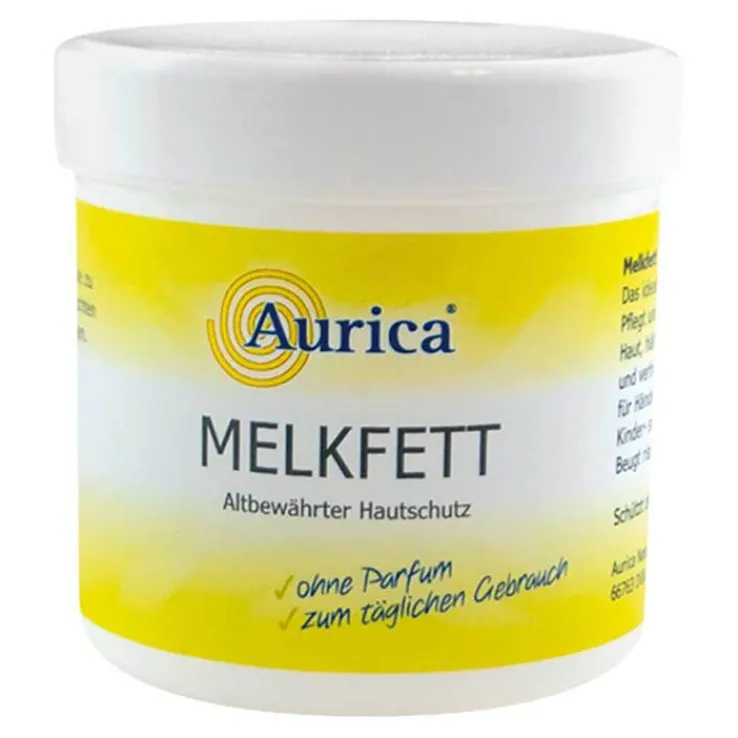 Aurica Melkfett bietet einen optimalen Schutz, pflegt und schützt Haut, Hände und Füße. Die traditionsreiche Hautpflege ist ideal bei rissigen, spröden Lippen und eignet sich hervorragend zur allgemeinen Pflege bei trockener, spröder und rissiger Haut. Als idealer Schutz bei Wind und Kälte. Da keine weiteren Zusätze enthalten sind, kann Aurica Melkfett auch in der Altenpflege zum Schutz vor Dekubitus oder zum Abschminken verwendet werden.