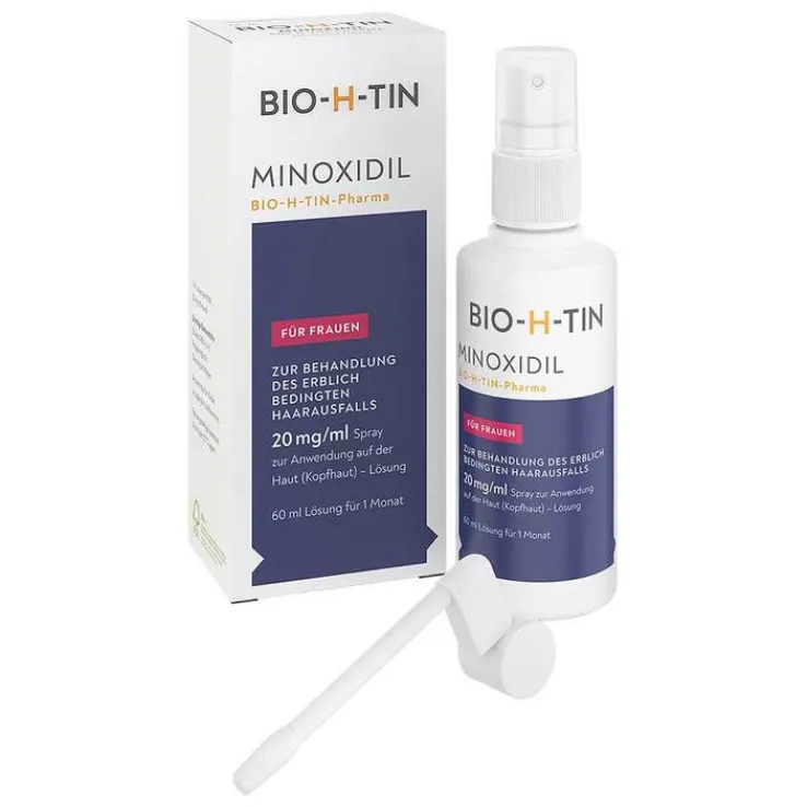 Minoxidil BIO-H-TIN-Pharma 20 mg/ml Spray. Wirkstoff: Minoxidil. Anw.: Androgenet. Alopezie b. Frauen. Enth.: Propylenglycol. Packungsbeilage beachten.Zu Risiken und Nebenwirkungen lesen Sie die Packungsbeilage und fragen Sie Ihren Arzt oder Apotheker. (MIN20_50/211118/LW)