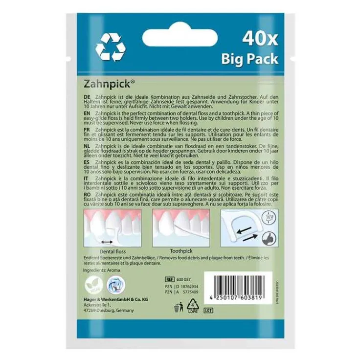 Miradent Zahnpick ist die praktische Kombination aus Zahnseide und Zahnstocher für die einfache Interdentalpflege. Auf dem kleinen Halter ist feine, ungewachste Zahnseide fest eingespannt. Die Aussparung sichert eine optimale Einführung der Zahnseide in den Zahnzwischenraum. Der Griff des Zahnpicks dient gleichzeitig als Zahnstocher.