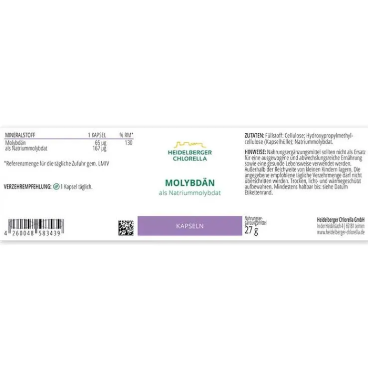 Füllstoff: Cellulose; Hydroxypropylmethylcellulose (Kapselhülle); Natriummolybdat.