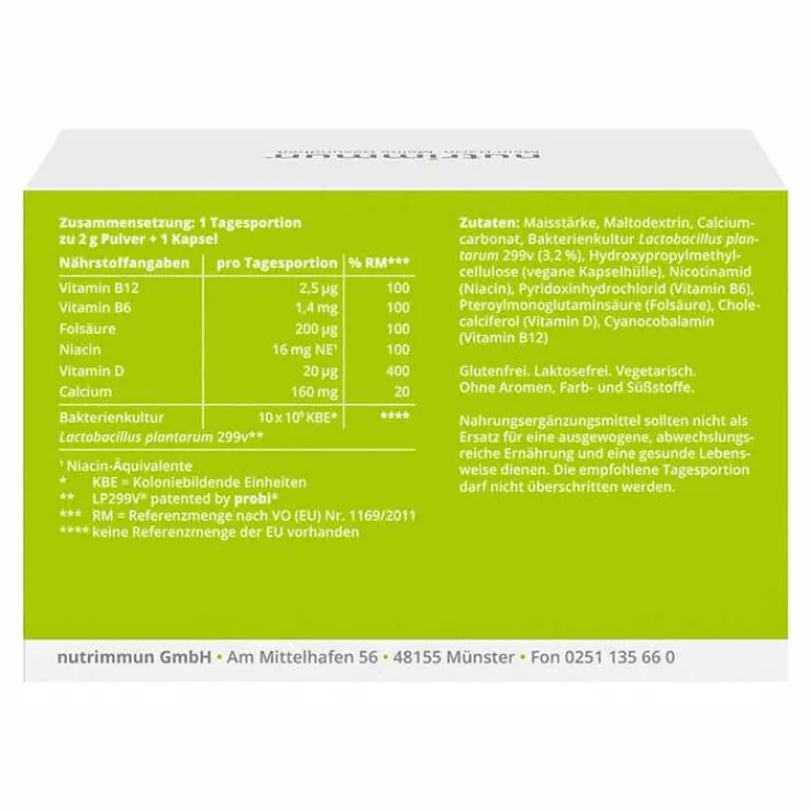 - Nahrungsergänzungsmittel mit Bakterienkultur LP299V® sowie Vitamin D, Calcium und B-Vitaminen