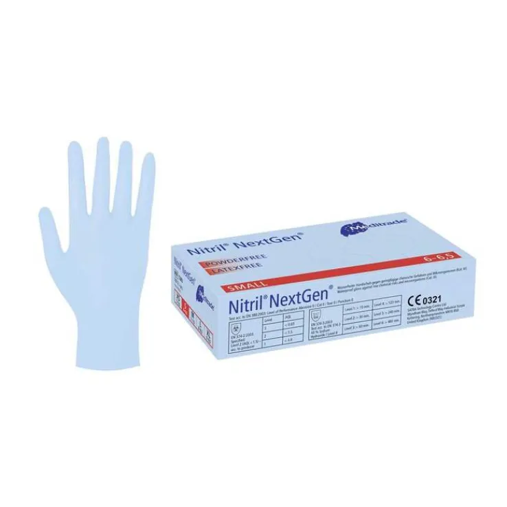 Der Nitril® NextGen® ist ein latexfreier Einmalhandschuh aus Nitrilbutadienkautschuk (NBR). Unsere „Innovation-Soft-Formel“ verleiht diesem Nitrilhandschuh eine fast latexähnliche, hohe Elastizität und Reißfestigkeit. Die Polymerinnenbeschichtung ermöglicht ein müheloses Anziehen. Beidhändig passend, mit Rollrand, blau, puderfrei, mikrogeraut, unsteril, für den Einmalgebrauch.