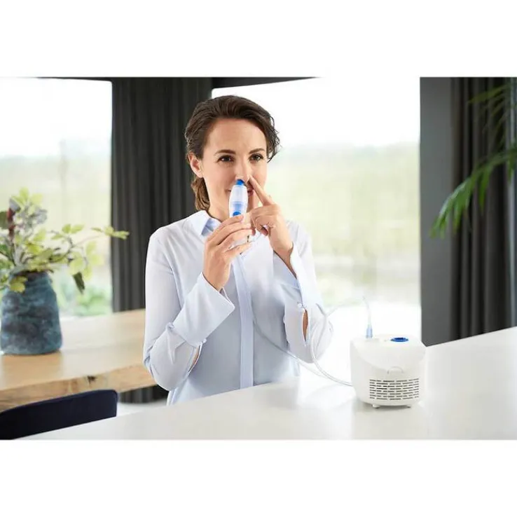 Mit dem OMRON Compact Plus, dem 2-in-1-Inhalationsgerät mit Nasendusche atmen Sie und Ihre Kinder frei durch die Nase. Die Kombination aus Nasenspülung und Vernebelung ermöglicht die Behandlung der oberen und unteren Atemwege, z.B. bei Erkältung, Asthma, Heuschnupfen, Sinusitis, Bronchitis und Bronchiolitis.