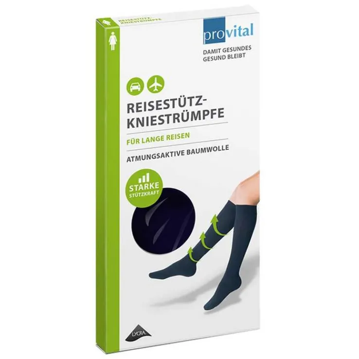 Provital Reisekniestrümpfe Größe 35 – 38 marine Baumwolle, 2 St