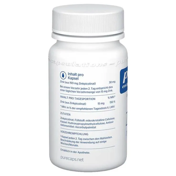 Zink 30 von Pure Encapsulations ist an Picolinsäure gebundenes Zink in Kapselform. Diese Zinkverbindung gilt als sehr gut verträglich und kann vom Körper leicht aufgenommen und verwertet werden, da Picolinsäure von Natur aus im Körper vorkommt. Die Kapseln eignen sich ideal zur Nahrungsergänzung bei einem höheren Tagesbedarf an Zink, etwa bei Rauchern, vegetarischer Ernährung oder als zusätzliche Unterstützung des Immunsystems.*