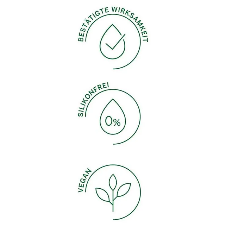Die Haarpflege kommt ohne Silikone aus. Bei der Umstellung auf silikonfreie Produkte können die Haare zunächst angegriffen, stumpf oder spröde aussehen. Es dauert eine Weile, bis die Haarstruktur sich öffnet und wertvolle Nährstoffe wie Vitamine, Mineralstoffe oder Antioxidantien aufnehmen kann.