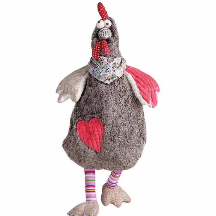 Wer möchte nicht eine liebenswerte Henne namens Berta zur Freundin haben? Immer fröhlich und gut gestylt mit schickem Halstuch, passender Herzapplikation und vorwitzigen Ringelsocken. Ein nettes verrücktes Huhn für tolle Abenteuer! Sie ist einfach handzuhaben, denn ihr Bezug hat einen langen, qualitativ hochwertigem Reißverschluss auf der Rückseite. Falls Berta sich also mal schmutzig macht, ist der Bezug einfach zu waschen. Die Vorderpartie ist gepolstert und mit hochwertigem Innenfutter. Alle Tiere sind mit Aufhängeschlaufe.