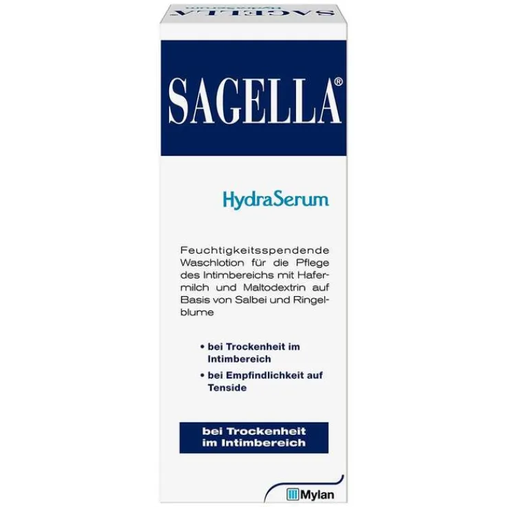 Die Intimwaschlotion Sagella HydraSerum wurde speziell für die Bedürfnisse von Frauen mit Neigung zu Trockenheit im äußeren Intimbereich entwickelt: Milchsäure unterstützt den natürlichen Säureschutzmantel der empfindlichen Intimhaut, Ringelblumenextrakte beruhigen zusätzlich, sind entzündungshemmend und fördern die Wundheilung. Der ebenfalls enthaltene Salbei unterstützt mit seinen antimikrobiellen, desinfizierenden und desodorierenden Eigenschaften. Hafermilch und Maltodextrin sorgen für die Verbesserung der Hautfeuchtigkeit.