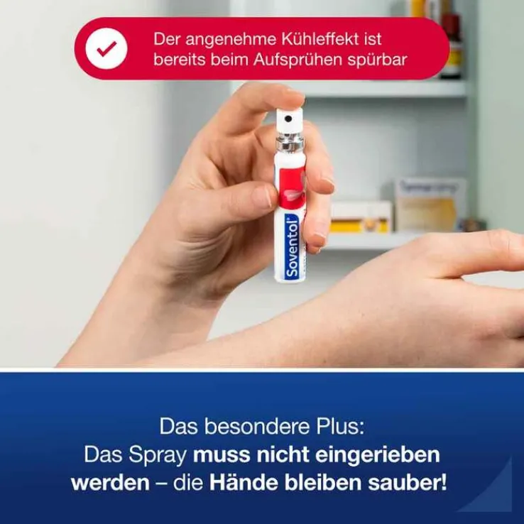 Das besondere Plus: Das Spray muss nicht eingerieben werden – die Hände bleiben sauber! Durch diese berührungsfreie Anwendung ist das Soventol® Anti-Juck Spray auch ideal für behaarte, schwer erreichbare und berührungsempfindliche Hautpartien geeignet.