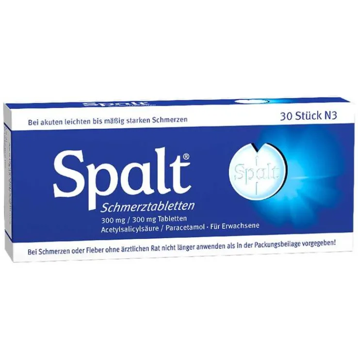 Spalt® Schmerztabletten ist ein rezeptfreies Arzneimittel für Erwachsene bei akuten leichten bis mäßig starken Schmerzen. Spalt® Schmerztabletten enthält erstmalig 300 mg ASS und 300 mg Paracetamol. Die beiden Wirkstoffe ASS und Paracetamol ergänzen sich in ihrer Wirksamkeit, denn die schmerzstillende Wirkung ist stärker als nach Einnahme der Einzelsubstanzen. Während bei ASS eine Wirkung direkt am Ort des jeweiligen Schmerzgeschehens (peripheres Gewebe) im Vordergrund steht, lindert Paracetamol den Schmerz direkt im Gehirn (zentrale Wirkung).