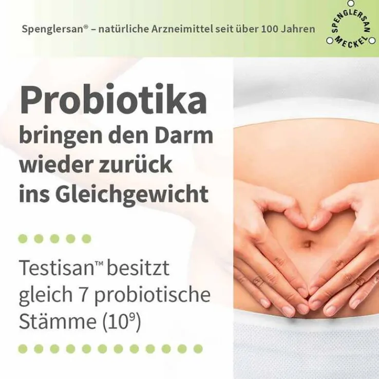 In den Testisan Kapseln sind (Bifidobacterium infantis*, Lactobacillus casei, Lactobacillus rhamnosus*, Lactobacillus acidophilus*, Bifidobacterium bifidum*, Cellulase, Lactobacillus bulgaricus, Bifidobacterium lactis) enthalten, jeweils in der Konzentration 10 9 zur regenerativen Besiedlung des Darms. Die innovative Verkapselung schützt die Bakterien vor Magensäure. Die Bakterien erreichen den Darm unbeschadet.