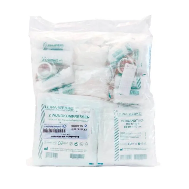23teilige Verbandkasten-Füllung nach DIN 13169-E für Betrieb und Büro in einer Plastiktüte.