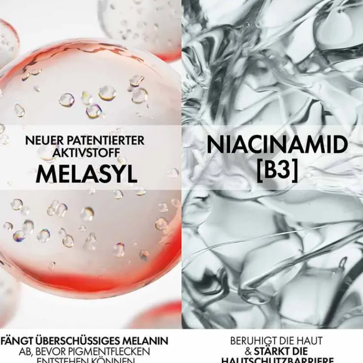 Die Vichy Liftactiv Pigment Specialist B3 Augenpflege LSF50+ ist Teil der B3-Serie. Diese beinhaltet Melasyl™, ein neuer patentierter Aktivstoff, der überschüssiges Melanin abfängt, bevor Pigmentflecken entstehen können. Ein weiterer Bestandteil ist Niacinamid, das die Haut beruhigt und ihre Schutzbarriere stärkt.